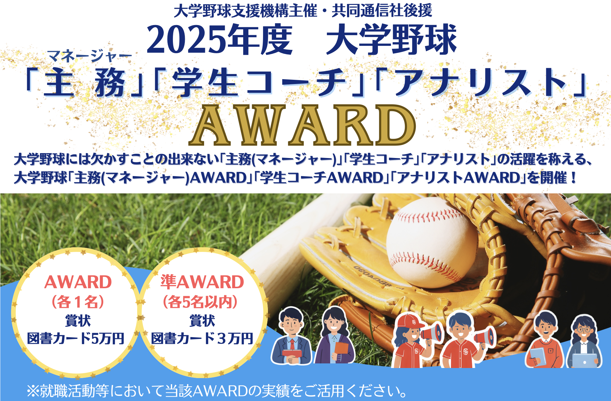 審査方法大学野球「主務(マネージャー)AWARD」「学生コーチAWARD」「アナリストAWARD」共通
